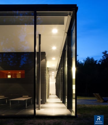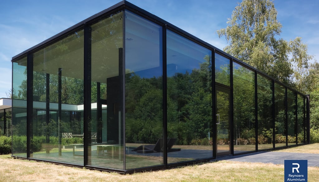 Vitrage structurel à clamer pour un rendu minimaliste sans encadrement visible.